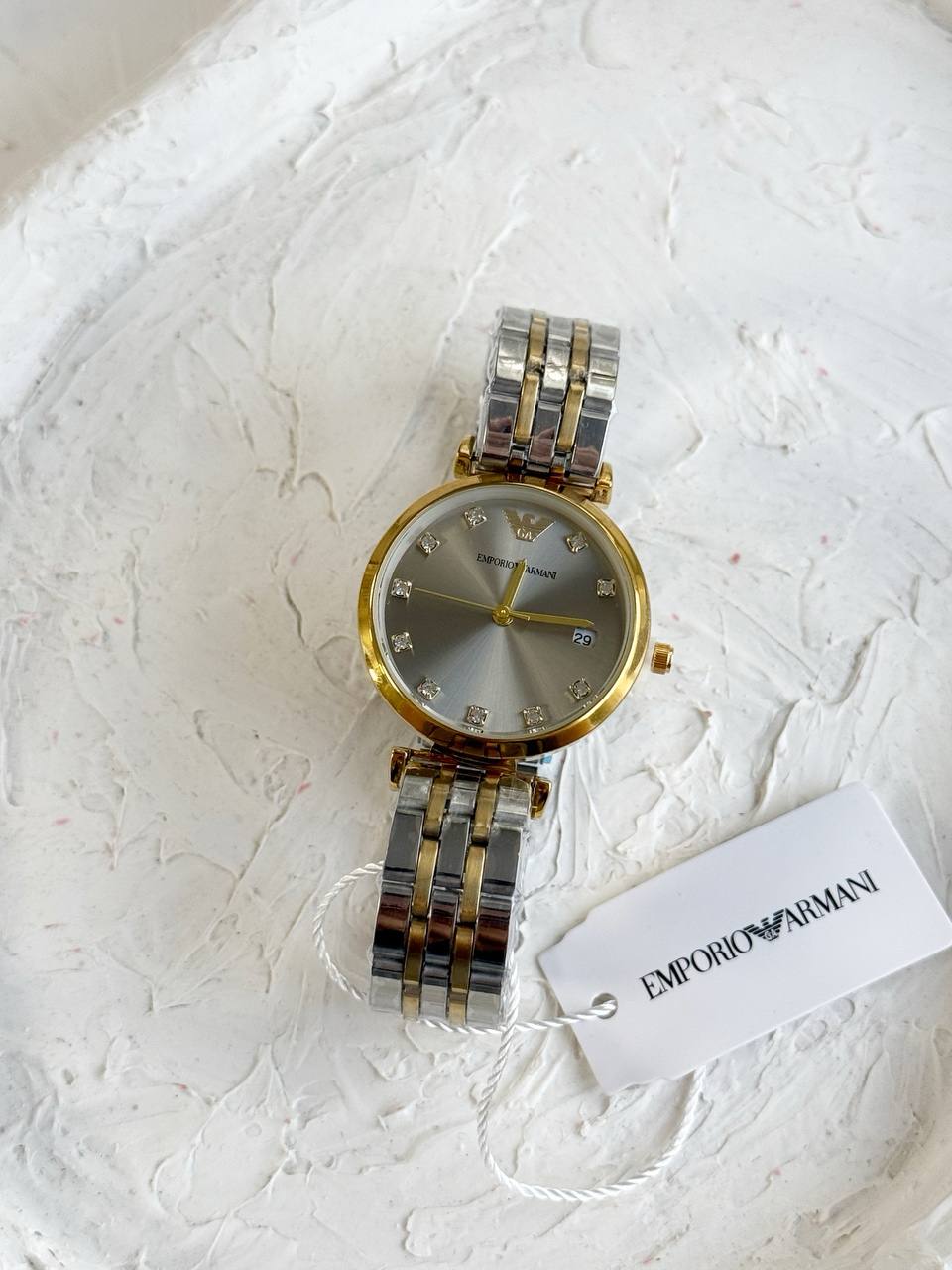ساعت ایمپرو آرمانی صفحه دودی با قاب طلایی