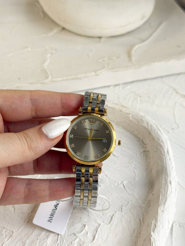 ساعت ایمپرو آرمانی صفحه دودی با قاب طلایی