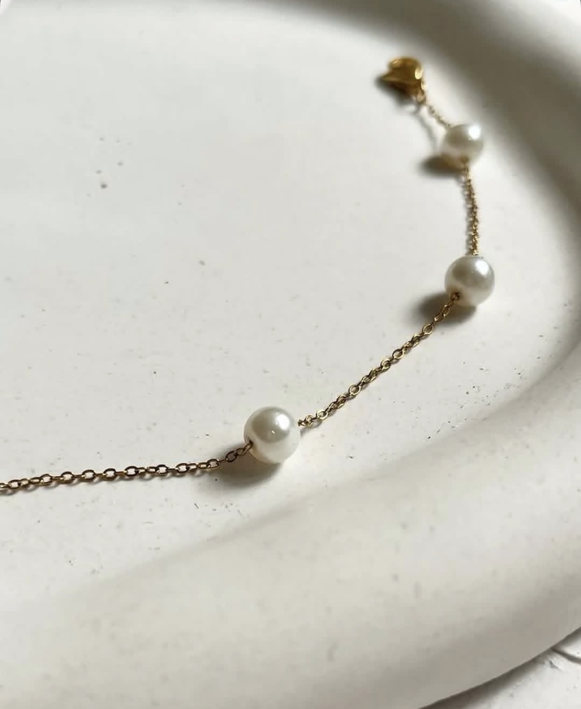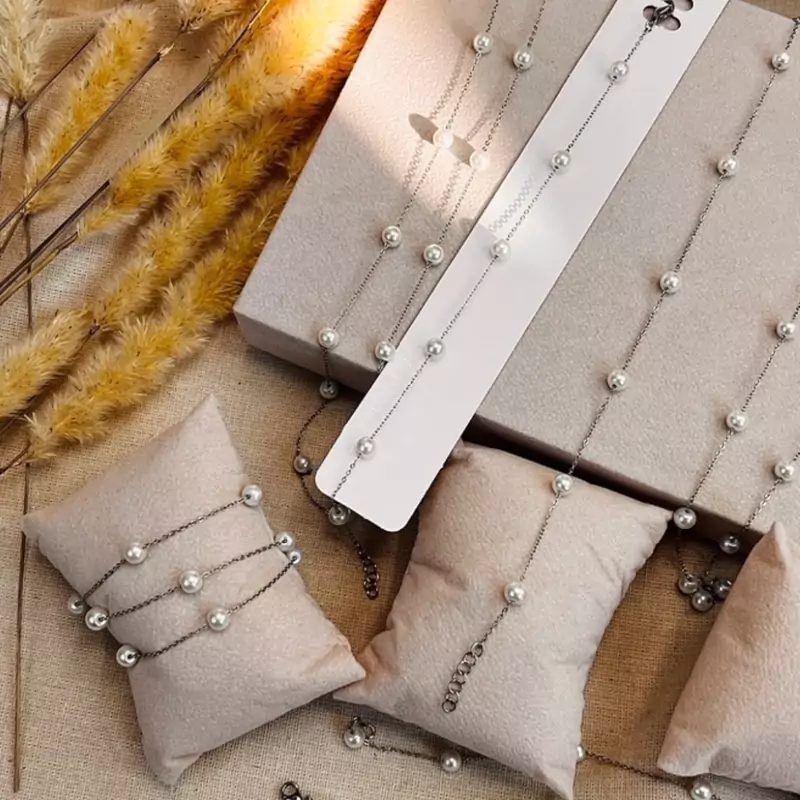 ست دوتیکه زنجیر و دستبند مرواریدی